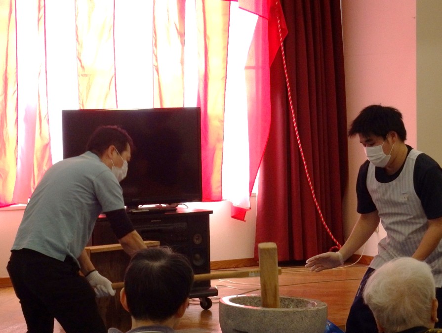 数年ぶりに、幸富久荘でもちつき大会を行いました。